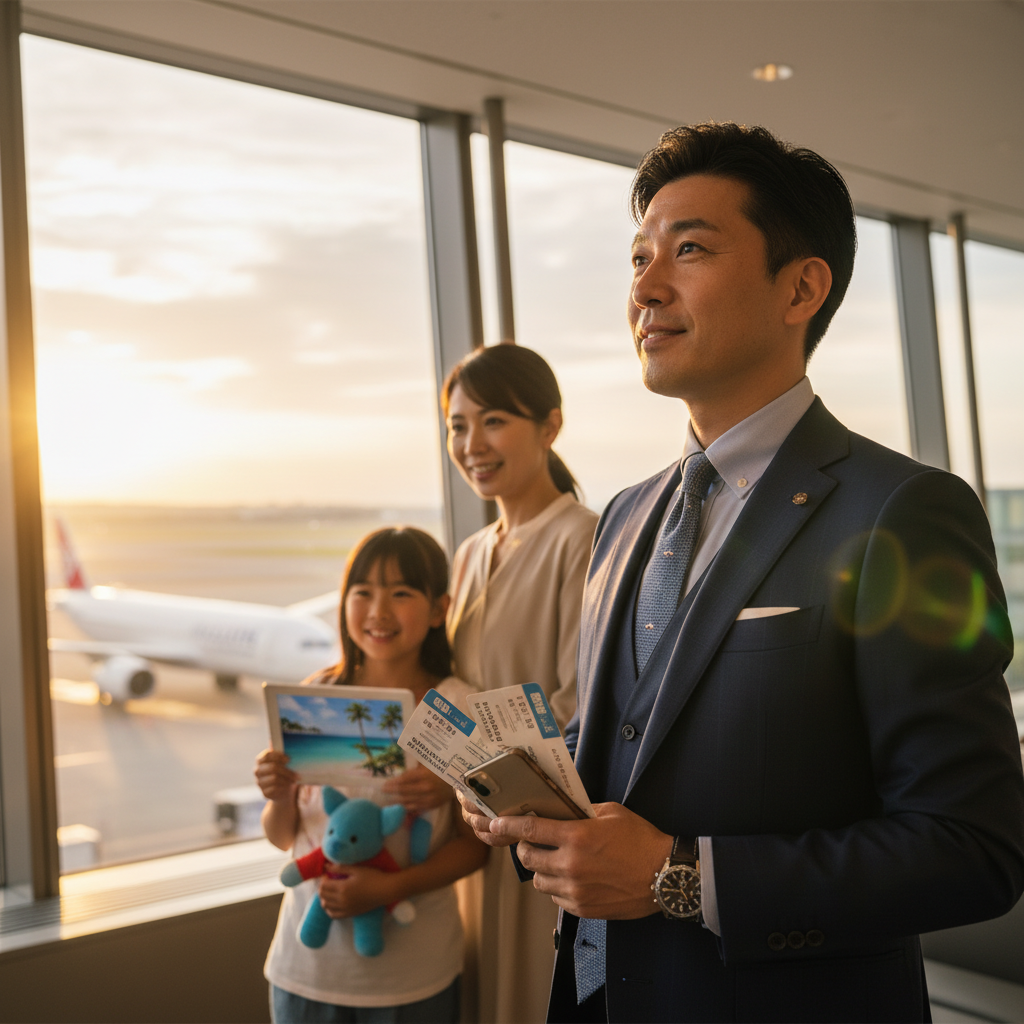 成田空港のANAラウンジ。落ち着いた照明の中、出発を待つ妻と娘の顔は、かつてないほど輝いている。娘は「パパ、この椅子、ベッドみたいに動くよ!」と、初めてのビジネスクラスのシートに大はしゃぎだ。妻も、提供されたシャンパングラスを傾けながら、「本当に連れてきてくれたのね」と、穏やかな、心からの笑顔を向けてくれた。