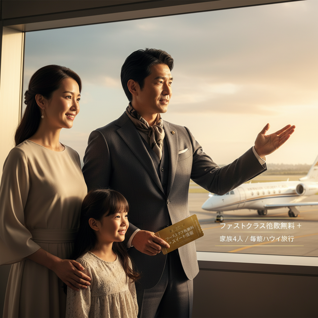 長女(10歳)の無垢な言葉が、羽田のラウンジに突き刺さった。私の手元には、ANA、JAL、そしてマリオットの提携カードが3枚。年間決済額は2,500万円を超え、ITコンサルティング会社の代表として、ビジネスは順調そのものだ。しかし、家族4人のハワイ旅行、それも「往復ファーストクラス」をフルフラットで予約しようとした瞬間、私の「マイル資産運用」は破綻した。