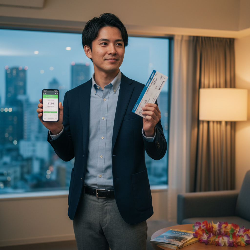 貯まったdポイントはJALマイルに交換可能だ。これなら、日々の仕事(通信)と生活(コンビニ)のすべてが、ハワイへのビジネスクラスチケットに直結する。私は震える指先で、自分名義の申し込みボタンを押した。